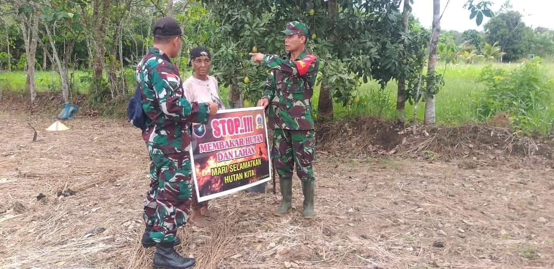Sertu Suhudi selaku Babinsa secara Intensif lakukan pengecekan lahan pertanian warga, Ia juga memberikan sosialisasi terkait bahaya karhutla dan sanksi yang diberikan jika melakukan pembakaran hutan dan lahan, serta meminta masyarakat tidak melakukan pembakaran hutan dan lahan di musim kemarau.