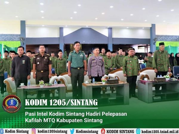 Sintang – Perwira Seksi Intelijen (PasiIntel) Kodim 1205/Sintang, Lettu Inf Edi Ardianto menghadiri pelepasan kontingen Kafilah Kabupaten Sintang untuk mengikuti kegiatan Musabaqah Tilawatil Qur’an (MTQ) ke-XXXI tingkat Provinsi Kalimantan Barat yang akan diselenggarakan di Kabupaten Sanggau. Pelepasan berlangsung di Pondopo Rumah Dinas Bupati Sintang, Rabu (23/08/2023).