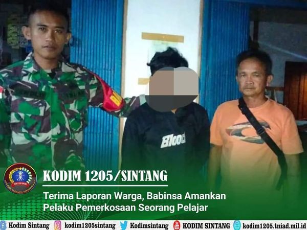 Sintang – Seorang pemuda berinisial R (22) pelaku pemerkosaan seorang pelajar di Desa Sumber Sari Kecamatan Ketungau Tengah diamankan oleh Babinsa Koramil 1205-09/Ketungau Tengah Serka Erwin.