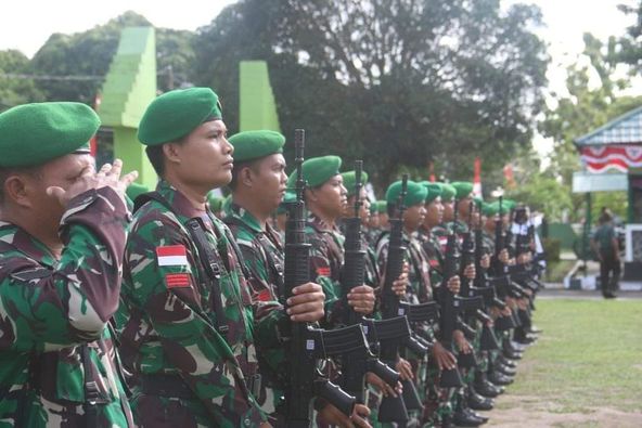 Putussibau – Kodim 1206/Putussibau melaksanakan latihan PBB bersenjata yang diikuti seluruh anggota, Acara dilaksanakan setelah kegiatan upacara bendera hari Senin bertempat di halaman Makodim 1206/Putussibau, Latihan PBB ini diawasi langsung oleh Pasi Ops Dim 1206/Psb Kapten Inf Ucok Saputra. (28/08/2023).
