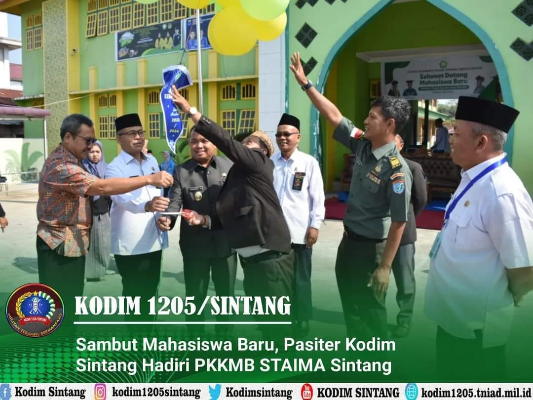 Sintang – Pasiter Kodim 1205/Sintang, Kapten Inf H. Didik Heru P mewakili Komandan Kodim 1205/Sintang menghadiri kegiatan pembukaan PKKMB (Pengenalan Kehidupan Kampus Mahasiswa Baru) tahun akademik 2023/2024 yang dilaksanakan di Halaman Kampus STAIMA Sintang, Senin(04/09/2023).