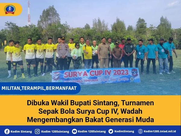 Pada kesempatan ini pula, Wakil Bupati Sintang menyampaikan bahwa Open Turnamen Sepak Bola Surya Cup IV tahun 2023 ini merupakan salah satu wadah bagi generasi muda untuk mengembangkan bakat dan potensi yang dimiliki dan sebagai ajang untuk mempererat tali persaudaraan melalui kegiatan olahraga.