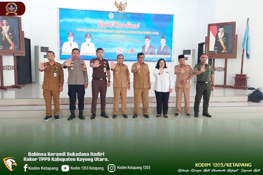 Kayong Utara – Serka Mahfud Santoso, Babinsa Koramil 1203-02/Skd menghadiri Rapat Koordinasi Tim Percepatan Penurunan Stunting (TPPS) Kabupaten Kayong Utara Tahun 2023 di Aula Istana Rakyat, Sukadana. Senin (11/9/2023).