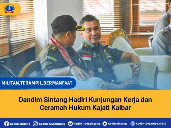 Sintang – Komandan Kodim 1205/Sintang Letkol Inf Rangga Bayu Widiartha yang didampingi Pasi Intel Kodim Sintang turut menghadiri kunjungan kerja Kepala Kejaksaan Tinggi Provinsi Kalimantan Barat Dr. Drs. Muhammad Yusuf S.H., M.H., di wilayah Kabupaten Sintang. Kunjungan dipusatkan di Pendopo Bupati Sintang, Tanjung Puri, Kecamatan Sintang, Kabupaten Sintang, Selasa (12/09/2023).