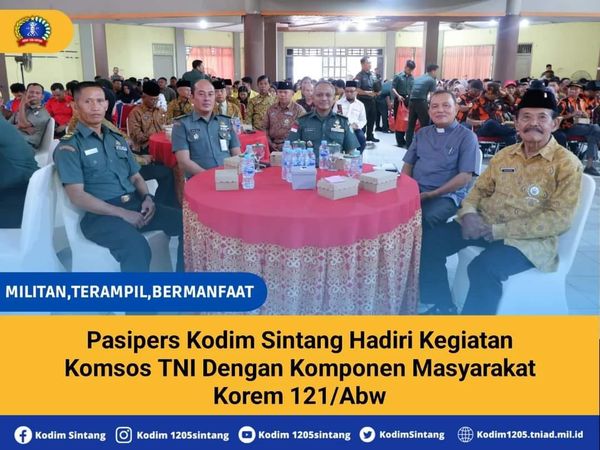 Sintang – Pasipers Kodim 1205/Sintang Lettu Inf Witono menghadiri kegiatan Komsos TNI dengan komponen masyarakat (Kommas). Kegiatan berlangsung di Gedung Pancasila Sintang, Rabu (13/09/2023).