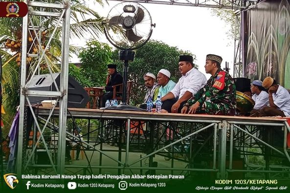 Ketapang- Sertu Agus Widodo, Babinsa Koramil 1203-01/Nanga Tayap, menghadiri kegiatan Pengajian Akbar Setepian Pawan di Desa Pangkalan Teluk, Kecamatan Nanga Tayap, Kabupaten Ketapang, Senin (18/9/2023).