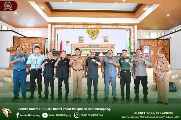 Ketapang – Dandim 1203/Ktp diwakili Pasiter Kodim 1203/Ktp, Kapten Inf Andri Fitri, menghadiri undangan Rapat Paripurna di Gedung Pancasila, Ketapang, Selasa (19/9/2023).
