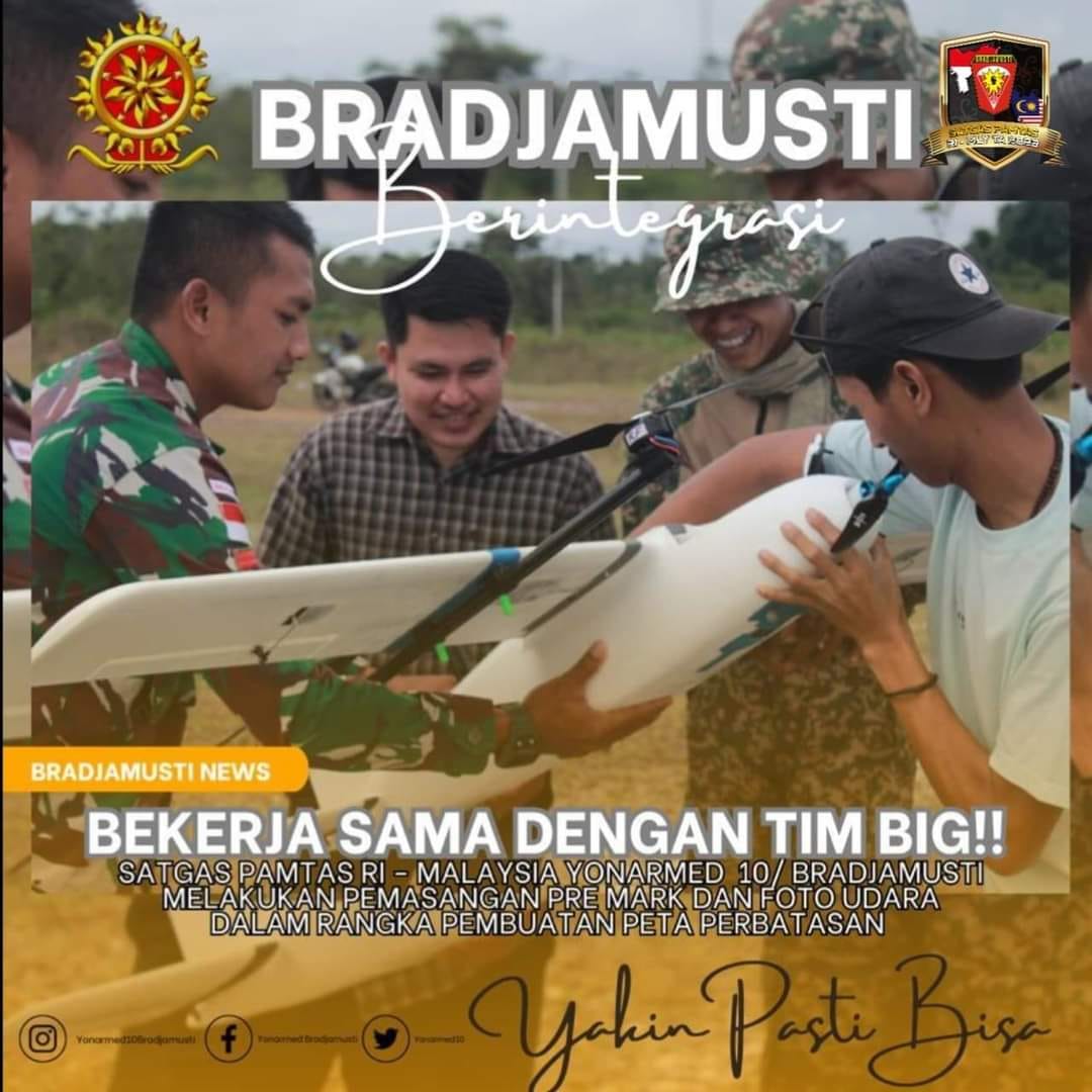 Menurut Dansatgas, kegiatan Tim BIG tersebut didampingi oleh prajurit Satgas Pamtas Yonarmed 10/ Bradjamusti untuk melakukan peninjauan sejumlah lokasi diantaranya di sekitar patok batas antara Indonesia dan Malaysia.