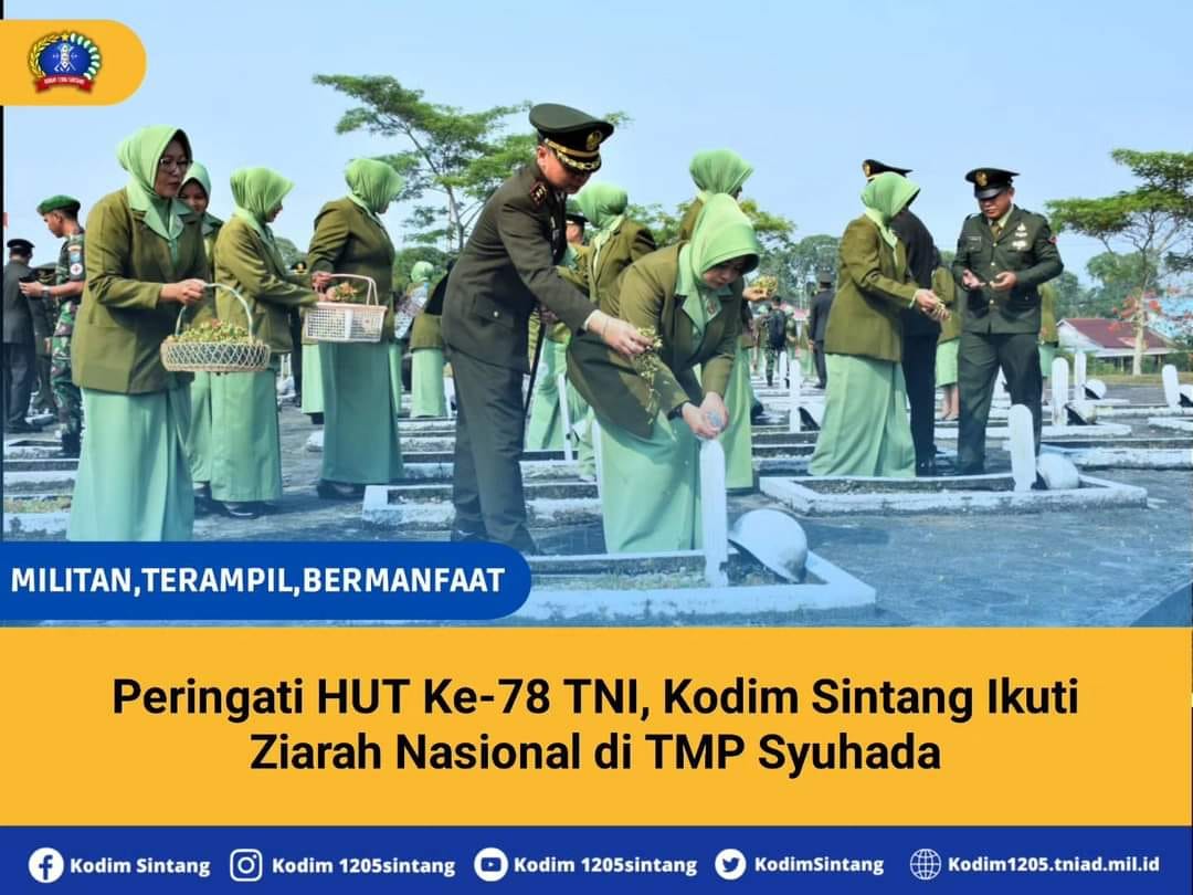 Disela-sela tabur bunga Dandim 1205/Sintang Letkol Inf Rangga Bayu Widiartha mengatakan, bahwa kegiatan ziarah ini merupakan tradisi di lingkungan prajurit TNI, termasuk dalam rangka memperingati HUT TNI ke-78, agar kita selalu mengingat jasa-jasa para pahlawan, juga sebagai bentuk rasa hormat dan bangga kita prajurit TNI, bahwa kita ada karena perjuangan dan pengorbanan tanpa pamrih dari para pendahulu.