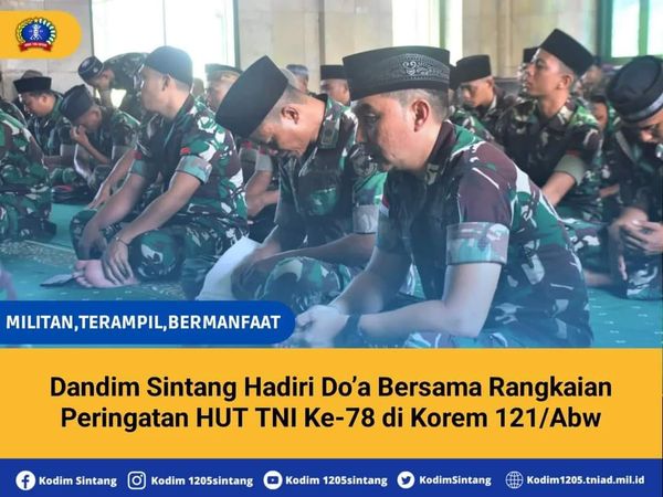 “Diharapkan kegiatan Do’a Bersama ini dapat menumbuhkan kesadaran akan pentingnya mengevaluasi diri dalam rangka meningkatkan kualitas perannya sebagai unsur keamanan dan pertahanan negara, serta sebagai bentuk syukur atas terselenggaranya seluruh kegiatan pada peringatan HUT TNI ke-78 ini”, kata Dandim Sintang.