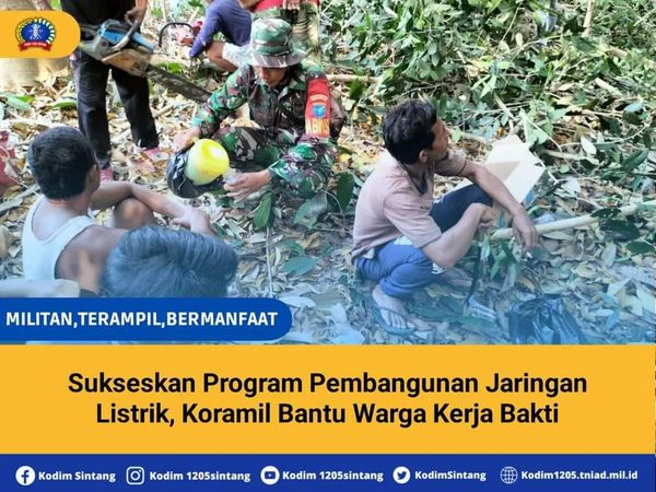 Sintang – Koramil 1205-03/Ketungau Hilir melaksanakan kerja bakti bersama warga masyarakat untuk mendukung kelancaran program pembangunan jaringan listrik di Kecamatan Ketungau Hilir, Sabtu (07/10/2023).