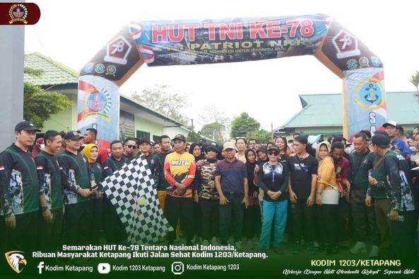Terkait kegiatan pagi ini, Dandim 1203/Ktp, Letkol Czi Agus Ikwanto, S.E, M. Han menjelaskan, jalan sehat merupakan salah satu rangkaian kegiatan dalam rangka memperingati HUT Ke-78 TNI yang bertujuan untuk mempererat kemanunggalan TNI-Rakyat dan seluruh komponen bangsa.