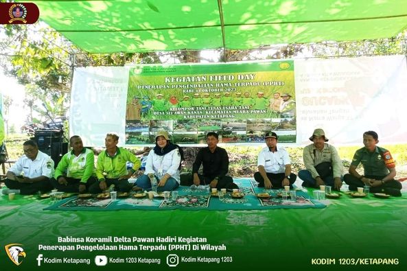 Ketapang – Guna mendukung sektor ketahanan pangan yang maju, mandiri dan modern di wilayah, Sertu Joko Sutrisno Babinsa Koramil 1203-12/Delta Pawan, menghadiri undangan kegiatan Penerapan Pengelolaan Hama Terpadu (PPHT) di Desa Sungai Awan Kanan, Kec. Muara Pawan, Ketapang. Rabu (11/10/2023).