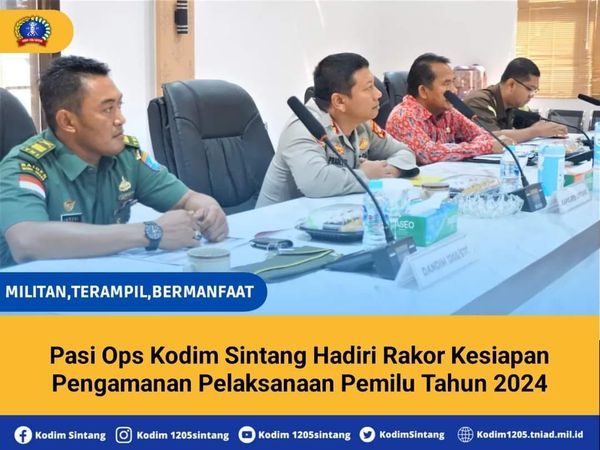 “Kami juga akan mengintruksikan kepada seluruh anggota jajaran Kodim Sintang, khususnya para babinsa agar selalu siap apabila diperlukan dalam memberikan pengamanan pada saat pelaksanaan pemilu tahun 2024, terang Pasi Ops Kodim Sintang.