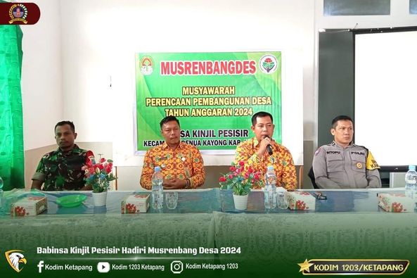 Ketapang – Serda Ansari, Babinsa Koramil 1203-13/Mhs, menghadiri Musyawarah Rencana Pembangunan Desa (Musrenbangdes) Tahun 2024, bertempat di Aula kantor Desa Kinjil Pesisir, Kec. Benua Kayong, Ketapang, Jum’at (13/10/2023).