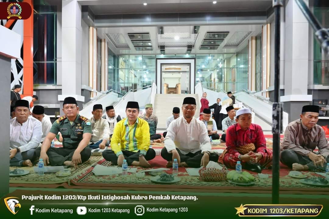 Ketapang – Lettu Inf M. Aris, Pasi Ops beserta sejumlah prajurit Kodim 1203/Ktp mengikuti kegiatan Istighosah Kubro yang digelar oleh Pemkab Ketapang di halaman Kantor Bupati Ketapang, Selasa (17/10/2023).