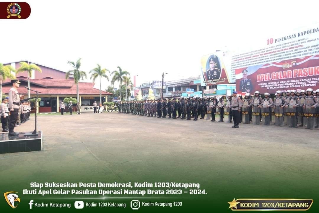 Ketapang – Komando Distrik Militer (Kodim)1203/Ketapang ikuti Apel Gelar Pasukan Operasi Mantap Brata 2023 – 2024 di Halaman Mapolres Ketapang, Selasa (17/10/2023).