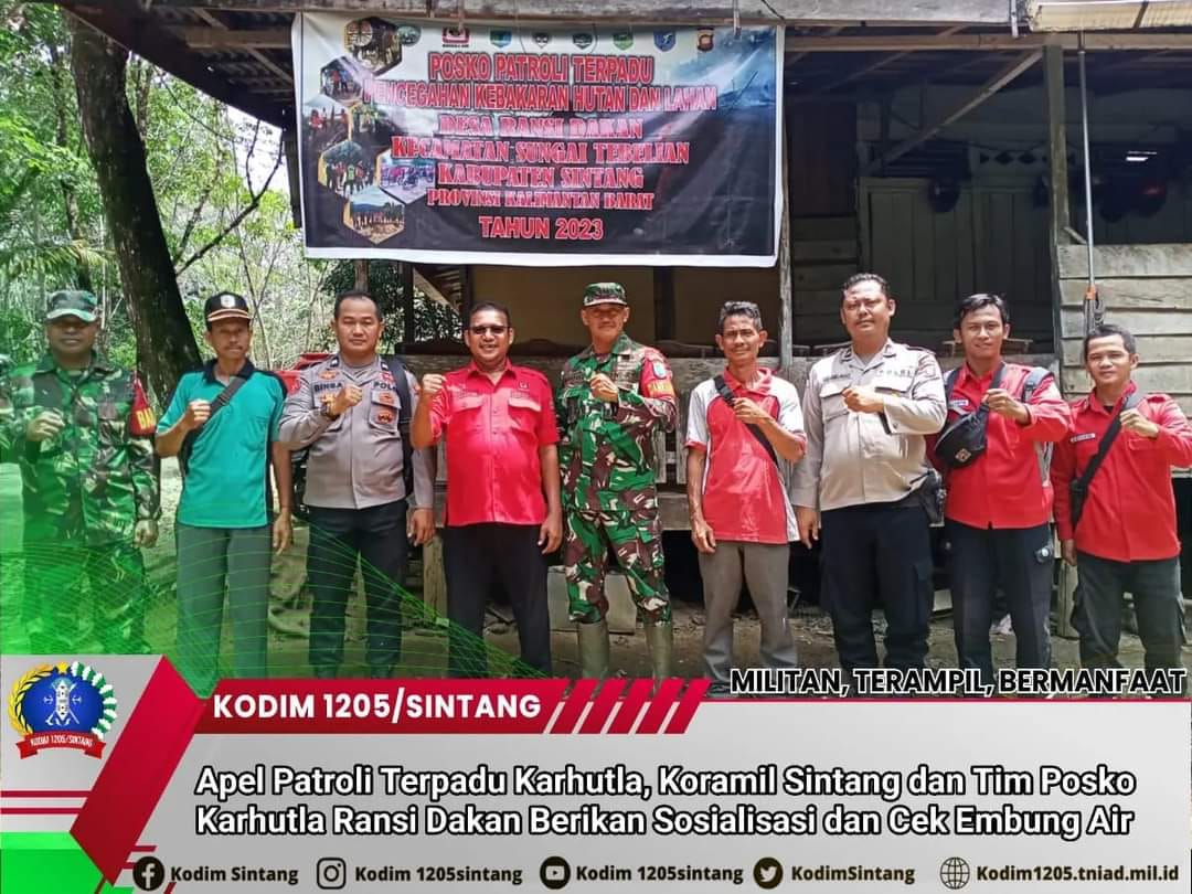 Sintang – Koramil 1205-07/Sintang bersama melaksanakan Apel Patroli Terpadu Karhutla dan Sosialisasi Pencegahan Karhutla di wilayah Desa Ransi Dakan Kecamatan Sungai Tebelian, Kamis (19/10/2023).