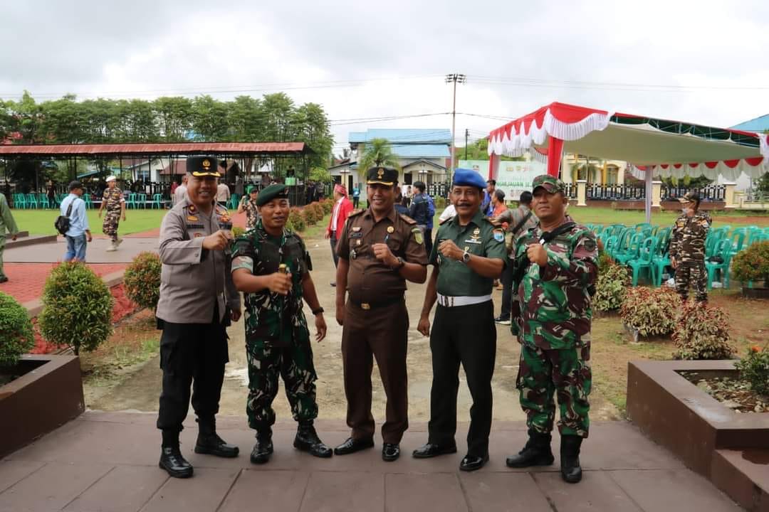 Kapuas Hulu – Dandim 1206/PSB Letkol Inf Sri Widodo yang di wakili Perwira Seksi Opersai (Pasi Ops) Kapten Inf Ucok Saputra, menghadiri gelaran simulasi sistem pengamanan kota (Sispamkota) pengamanan Pemilu 2024 di Mapoles Kapuas Hulu, Kamis (19/10/2023).