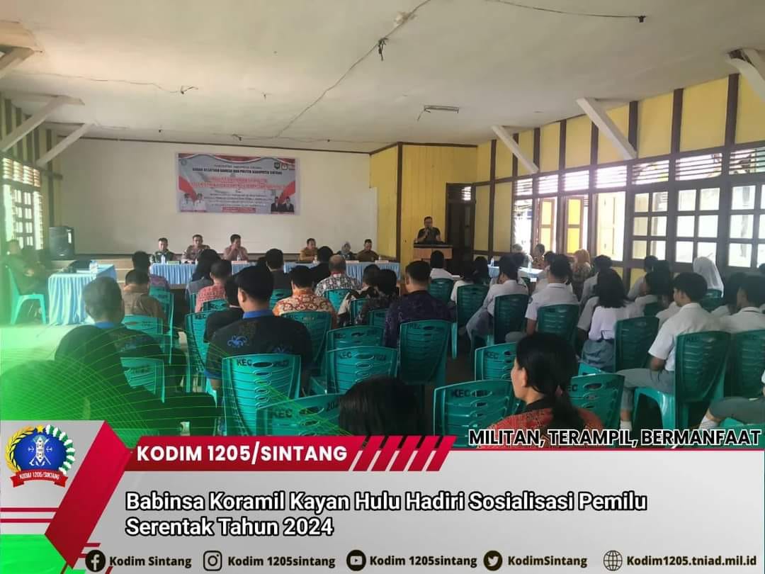 Sintang – Babinsa Koramil 1205-12/Kayan Hulu Serda M. Syafi’i menghadiri kegiatan Sosialisasi Pemilu 2024 yang dilaksanakan di Gedung Serbaguna Kecamatam Kayan Hulu, Jum’at (20/10/2023).
