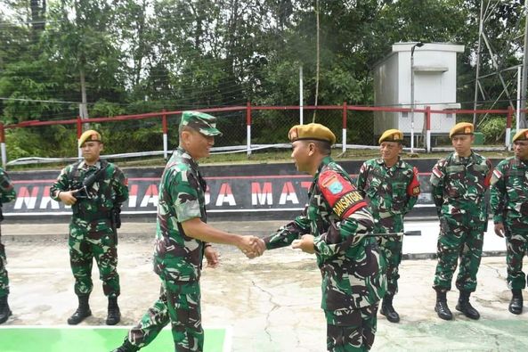 Kedatangan Kapusdalops Mabes TNI bersama rombongan diawali dengan hormat jajar dan disambut oleh Dansatgas Mayor Arm Andreas Prabowo Putro., S.I.Pem., M.I.P., M.Han. beserta jajaran perwira dan anggota Satgas.