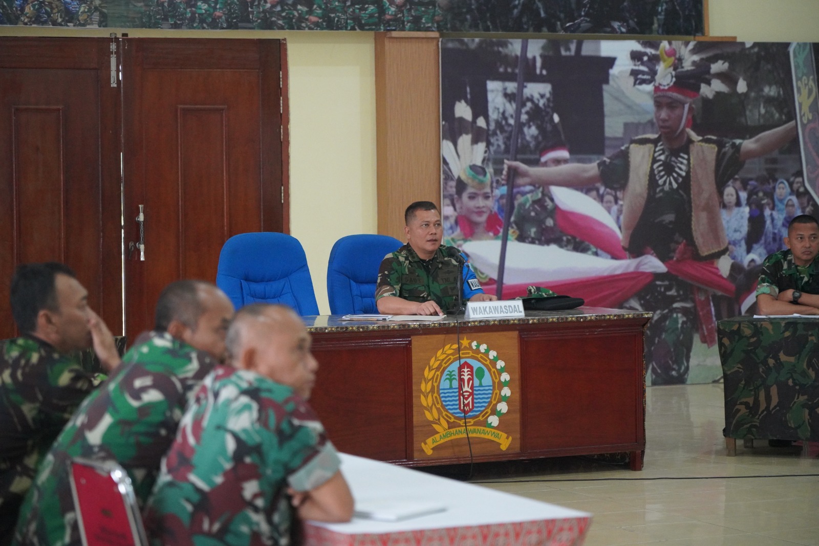 Danrem 121/Abw juga mengingatkan kepada para pelaku, apa yang sudah di arahkan oleh Wakawasdal tentang gambaran-gambaran dan mekanisme pelaksanaan latihan gladi posko agar benar-benar di pahami dan di laksanakan sehingga pada saat pelaksanaannya nanti tidak ada kesalahan, ucapnya.