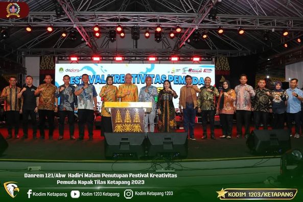 Ketapang – Danrem 121/Abw Brigjen TNI Luqman Arief, S.I.P hadiri malam Penutupan Festival Kreativitas Pemuda Napak Tilas 2023 oleh Pj Gubernur Kalbar dr. Harisson, M.Kes., di Balai Sungai Kedang, Ketapang. Selasa (24/10/2023).