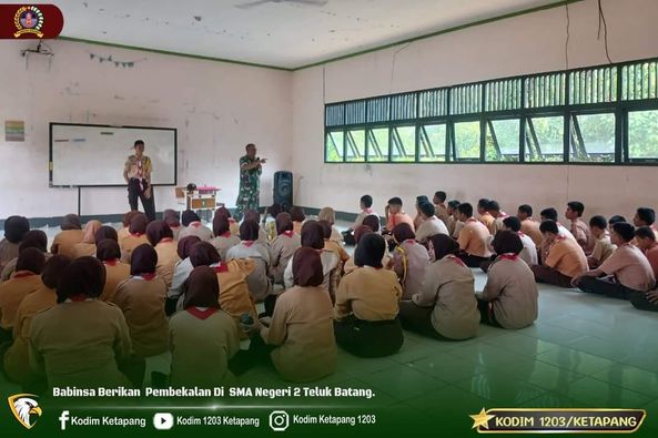 Hal ini ditegaskan Babinsa Koramil 1203-15/Teluk Batang, Sertu Abdul Wahab saat memberi pembekalan wawasan kebangsaan, semangat bela Negara serta pemahaman tentang kedisiplinan dan akhlak kepada siswa/siswi SMA Negeri 2 Teluk Batang, yang berlokasi di Desa Masbangun, Kec. Teluk Batang, Kayong Utara. Senin (23/10/2023).