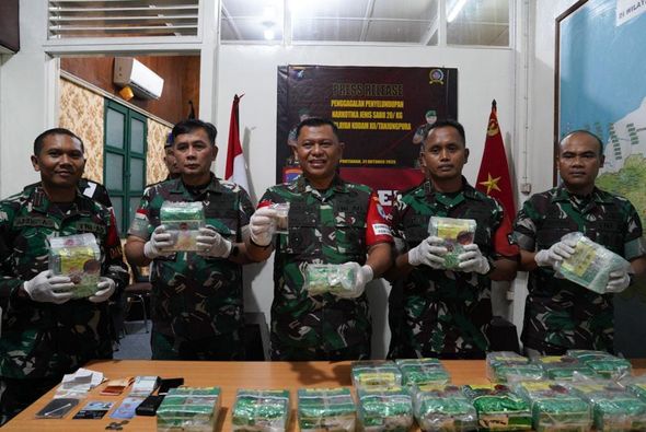 Diungkapkan Danrem 121/Abw Brigjen TNI Luqman Arief, S.I.P. pada saat memberikan press release kepada awak media, bahwa upaya penyelundupan narkoba jenis Sabu sebanyak 21 kg di kemas dengan bungkus teh cina yang dibawa oleh 1 orang WNA Malaysia, digagalkan oleh Satgas Pamtas RI-Malaysia sektor Timur Yonarmed 10/Bradjamusti di wilayah kec. Puring Kencana kab. Kapuas Hulu, Kalimantan Barat, pada Senin (30/10/2023).