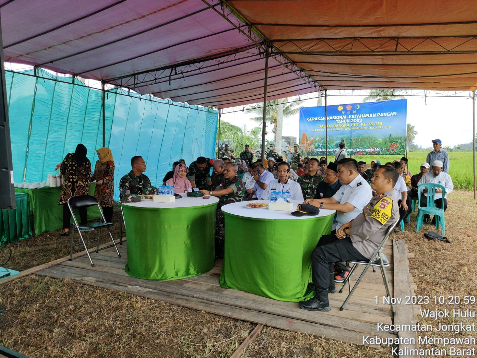 Mempawah, Kasiter Kasrem 121/Abw Kolonel Inf Mordechai Triyandono, mewakili Danrem 121/Abw Brigjen TNI Luqman Arief, S.I.P., menghadiri kegiatan Vicon Bersama Bapak Wapres Prof.Dr.K.H .Ma,Ruf Amin Dalam Rangka Kegiatan Gerakan Nasional Ketahanan Pangan Tahun 2023 dalam Mendukung HUT TNI ke 78 di Desa Wajok Hilir kec.Jongkat, Rabu (1/11/2023).