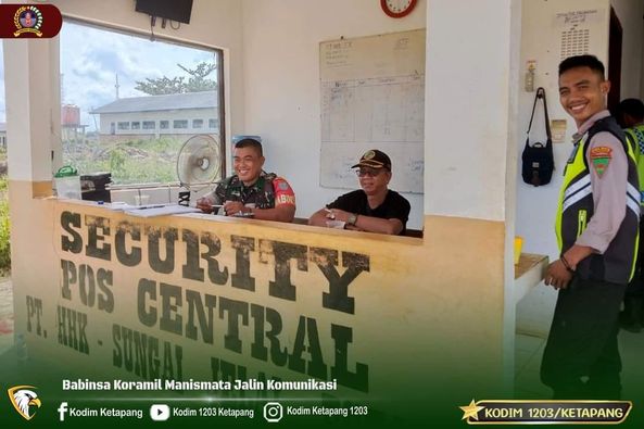 Ketapang – Kopda Muhammad Ismail, Babinsa Koramil-1203- 06/Manismata melaksanakan kegiatan rutinya memonitoring wilayah kerjanya, Kali ini menyambagi Pos Satpam/Security PT . Sungai Jelai Estate, Kec. Manismata, Ketapang. Jum’at (3/11/2023)