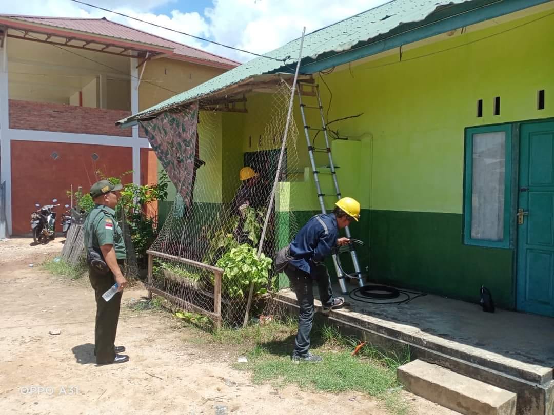 Sambas – PLN merupakan salah satu kebutuhan pokok yang sangat di perlukan oleh masyarakat, baik di gunakan untuk kebutuhan rumah tangga serta alat untuk penerangan oleh karena itu Danramil 06/Selakau bersama Anggota dampingi petugas PLN laksanakan pemeliharaan jaringan listrik di Makoramil 06/Selakau, Senin (06/11).