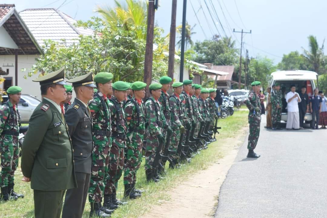 Selanjutnya inspektur upacara juga menyampaikan amanat Dandim yang berhalangan hadir, “Atas nama TNI-AD khusunya keluarga besar Kodim 1203/Ktp saya mengucapkan bela sungkawa yang sedalam-dalamnya atas kepergian Almarhum,”ujarnya.