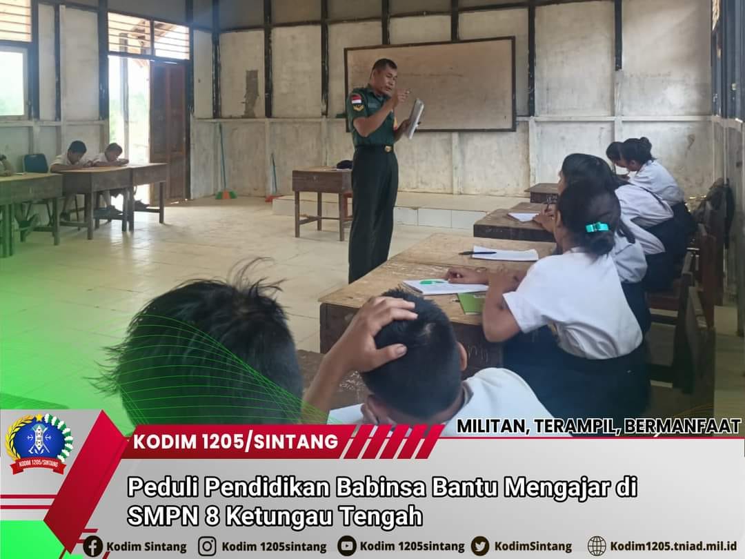 Kehadiran babinsa di SMPN 8 Ketungau Tengah ini sebagai guru Bantu, kegiatan seperti ini sebagai bagian dari tugas Babinsa kepada warga dan para siswa yang berada di wilayah binaanya.