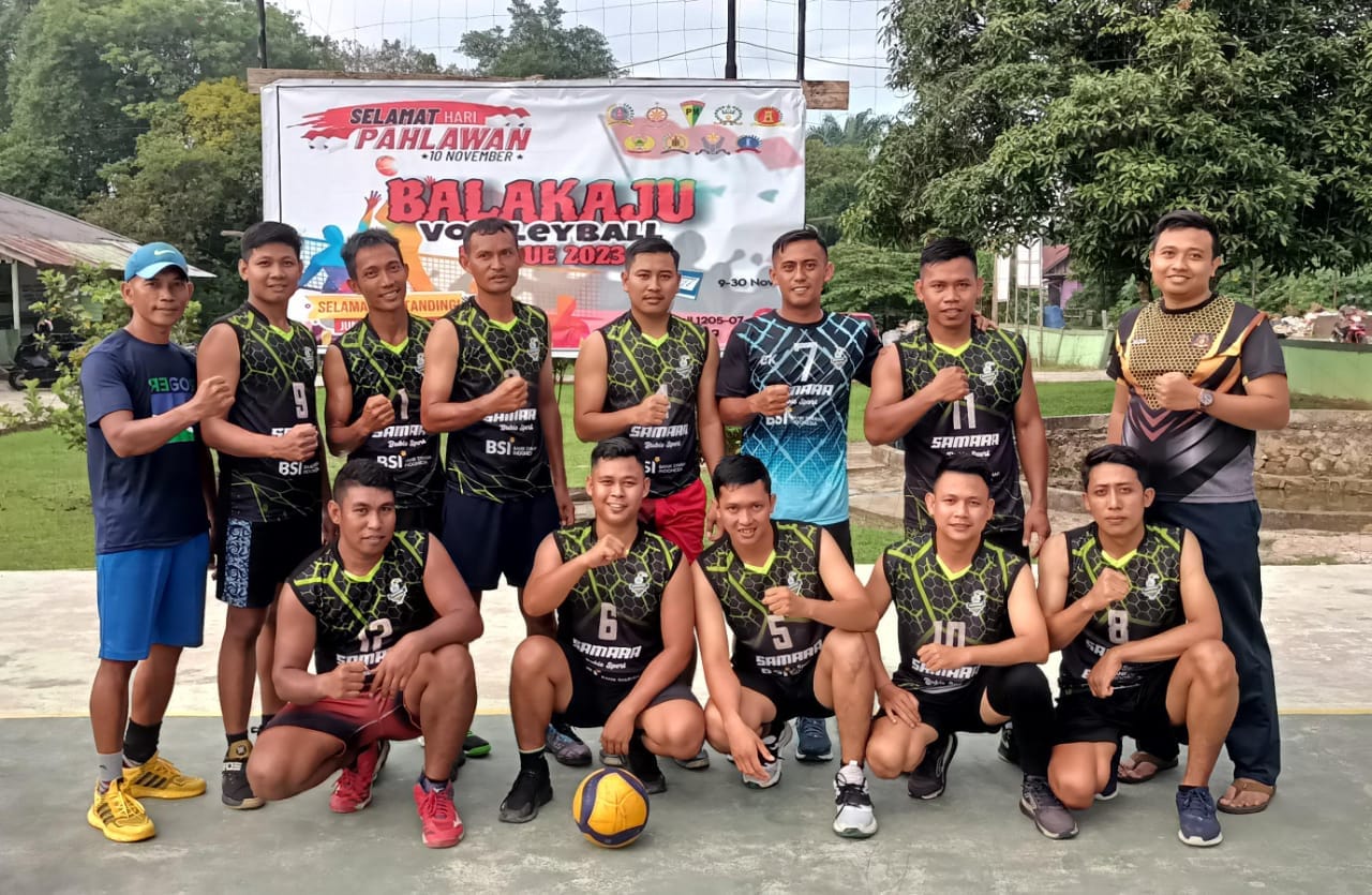 Sintang, Tim Voli Putra Korem 121/Abw mengikuti pertandingan bola Voli Balak Aju Volly Ball League 2023 dalam rangka Hari Pahlawan ke 78 Tahun 2023 yang di gelar di Lapangan Koramil 1205/07 Sintang, Minggu (12/11/2023).