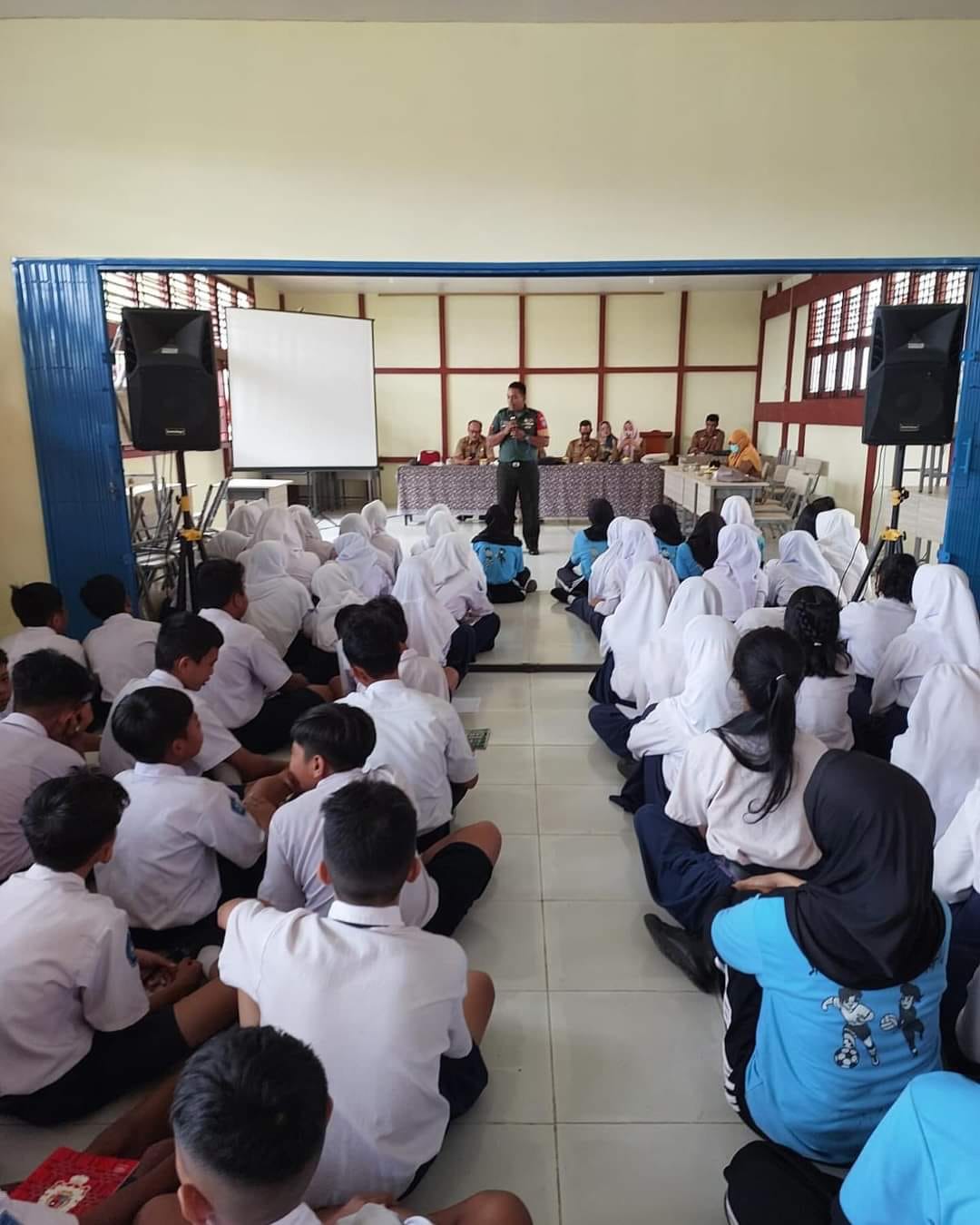 Sanggau – Anggota Koramil 01 / Kapuas Kodim 1204 / Sanggau Koptu Asmadi bersama Dinas Kesehatan dan Kepala Puskesmas Kab Sanggau melaksanakan sosialisasi tentang pencegahan penyakit demam berdarah di Sekolah SMP N 2 Kab Sanggau Jl.Dewi Sartika Kel.Ilir Kota Kec Kapuas Kab Sanggau.Selasa (14/11/2023)