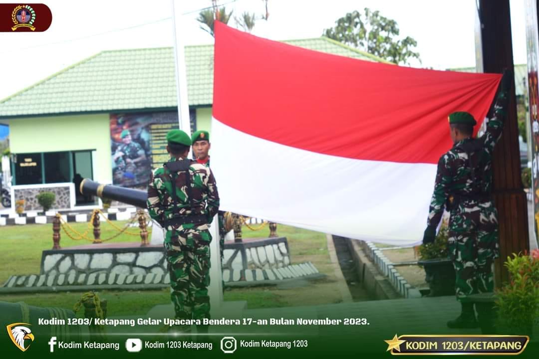 Ketapang – Danramil 1203-12/Delta Pawan, Kapten Inf Ignatius Andi memimpin Upacara Bendera tanggal 17 bulan November Tahun 2023 di Makodim 1203/Ketapang, Jum’at (17/11/2023).