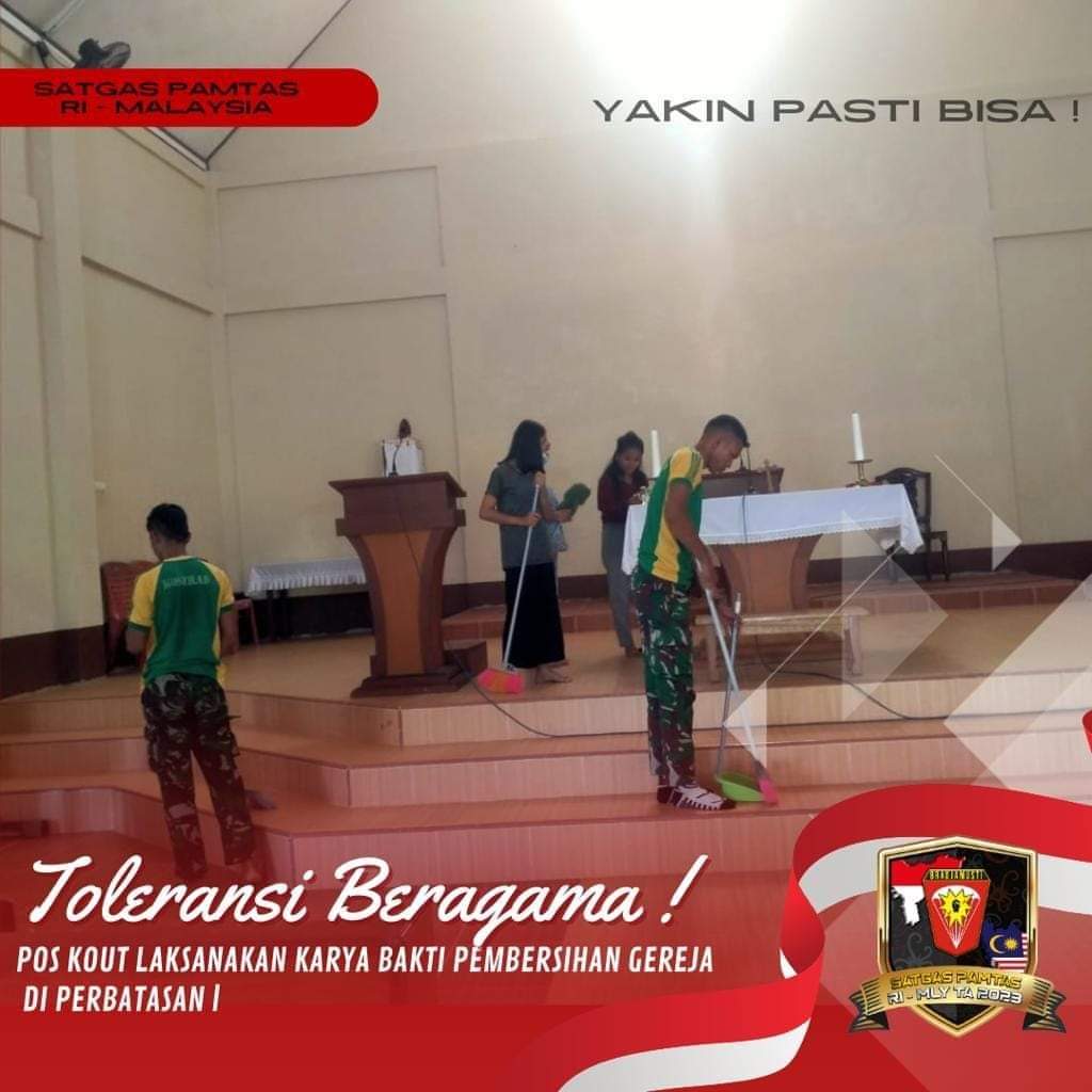 Dijelaskan kegiatan Karya Bhakti membersihkan Gereja ini merupakan wujud memperkuat solidaritas antara Prajurit Satgas dengan Masyarakat setempat melalui kegiatan membersihkan Gereja yang dilaksanakan dengan bergotong royong.