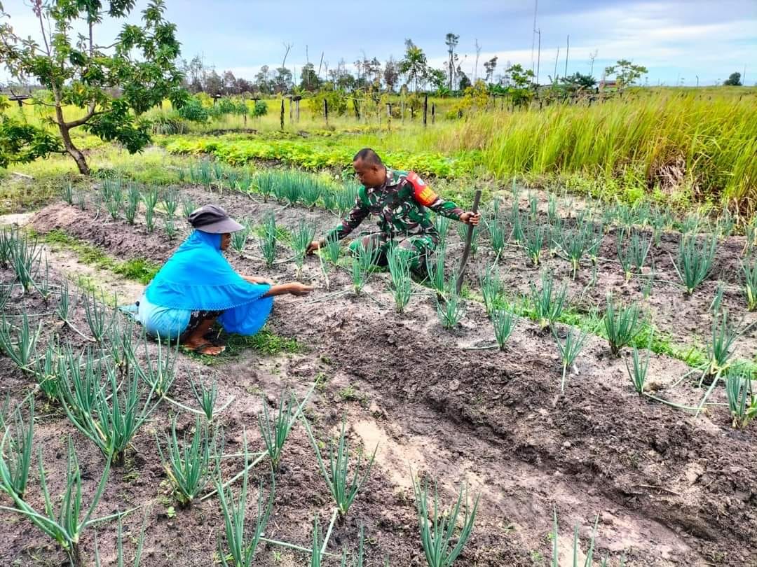 Kali ini upaya khusus pendampingan dilakukan Babinsa Koramil 08/Paloh Sertu Dwi Ariyanto yang mendampingi membersihkan gulma dan rumput liar di lahan tanaman daun bawang yang dimiliki Buk Sulastri.