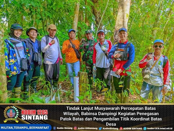 Sintang – Babinsa Koramil 1205-07/Sintang Serda Ahkmad Junaidi mengikuti kegiatan Penegasan Patok Batas dan Pengambilan Titik Koordinat bersama sejumlah Kepala Desa dan Pihak Kecamatan Sintang, Rabu (29/11/2023) kemarin.