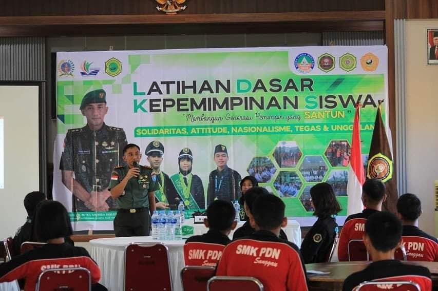 Sanggau – Komandan Kodim 1204 / Sanggau Letkol Inf Putra Andika Trihatmoko memberikan Latihan Dasar Kepemimpinan kepada Siswa SMK IPDN diruang Satria Wibawa Makodim Jln padi no 1 kelurahan Tanjung Kapuas kecamatan Kapuas Kabupaten Sanggau.Kamis (30/11/2023)