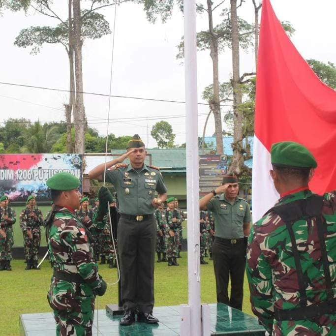 Selaku Inspektur Upacara adalah Letkol Inf Nasli S.Sos., (Dandim 1206/Putussibau), Komandan Upacara Lettu Inf Syafridoni (Pasi Intel Dim 1206/Psb), Perwira Upacara Kapten Cba Rino Apriyanto (Pasi Logistik Dim 1206/Psb), Pengucap Sapta Marga Serda Kelana (Babinsa Ramil 1206-06/Psu) dan Pengibar Bendera Merah Putih Personel Babinsa Koramil 1206-06/Psu, upacara yang diikuti oleh Seluruh Perwira Staf serta Danramil 1206-06/Psu dan Danramil 1206-12/Kalis, Personel serta ASN Jajaran Kodim 1206/Psb berlangsung dengan Khidmat.