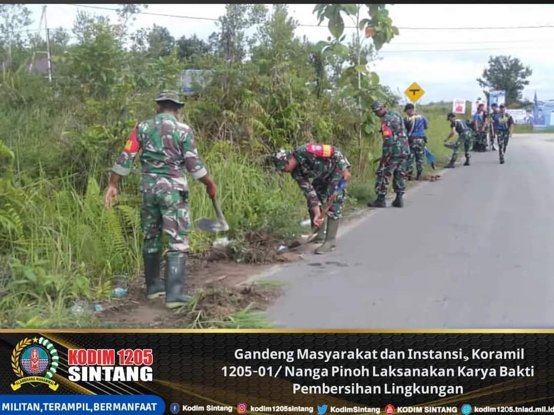 Gandeng Masyarakat dan Instansi, Koramil 1205-01/ Nanga Pinoh Laksanakan Karya Bakti Pembersihan Lingkungan