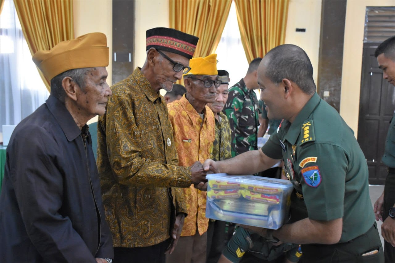 Pada kesempatan itu, Komandan Korem 121/Abw Brigjen TNI Luqman Arief, S.I.P., melalui Kasrem 121/Abw Kolonel Inf Soelistyo Bawono, S.I.P., memberikan bantuan sembako dan santunan kepada para Veteran, Wakawuri dan Yatim Piatu Kabupaten Sintang.