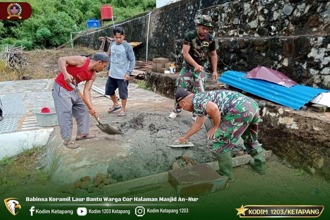 Ketapang – Berat sama dipikul ringan sama dijinjing, begitulah kira-kira kekompakan Babinsa Koramil 1203-05/Laur dan warga terlihat saat bergotong royong pengecoran halaman Masjid An-Nur yang berlokasi Di Desa Riam Bunut, Kec. Sungai Laur, Kab. Ketapang. Sabtu (6/1/2024).