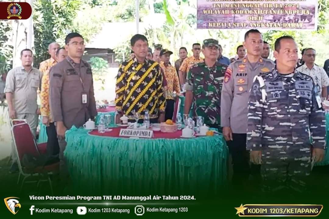 Ketapang – Bersama Jajaran Forkopimda, Kodim 1203/Ktp mengikuti video conference (Vicon) Peresmian Program TNI Manunggal Air Bersih TA 2024 bersama Kepala Staf Angkatan Darat, Jenderal TNI Maruli Simanjuntak, M.Sc , Bertempat di Desa Kinjil Pesisir, Kec. Benua Kayong, Ketapang. Kamis (25/01/2024).