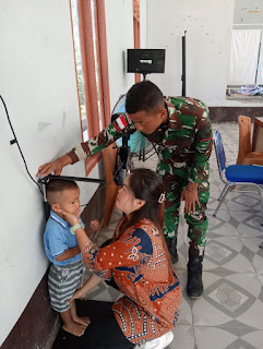 Kapuas Hulu, –Satgas Pamtas RI-Malaysia Yonzipur 5/ABW bersinergi dengan puskesmas Badau kembali menggelar gelar posyandu untuk bayi di bawah Lima Tahun (Balita).
