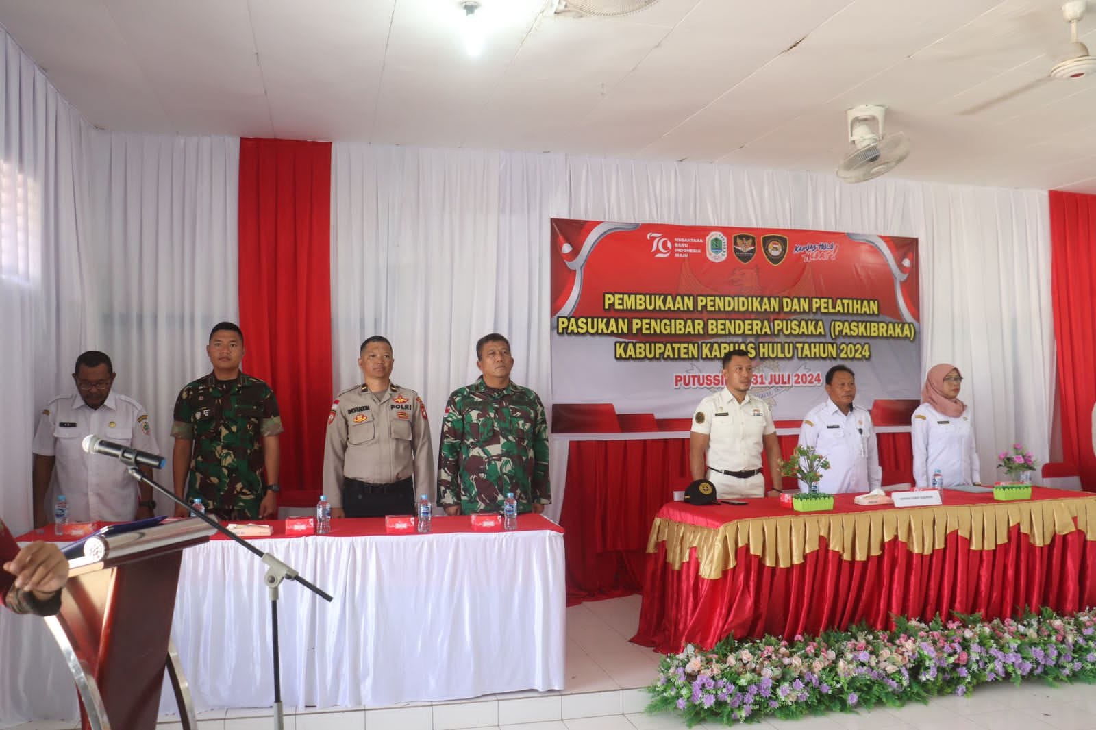 KAPUAS HULU – PasiOps Kodim 1206/Putussibau Kapten Inf Ucok Saputra, dan BatiOps Serma Rano Wijaya(Sebagai pelatih) Hadiri Acara Pembukaan Kegiatan Pendidikan Dan Pelatihan Paskibraka Kabupaten Kapuas Hulu Tahun 2024, Bertempat di Aula Hotel Uncak Lestari, Jln. Lintas Selatan, Kel. Kedamin Hilir, Kab. Kapuas Hulu, Prov. Kalbar, Rabu (31/07/2024).