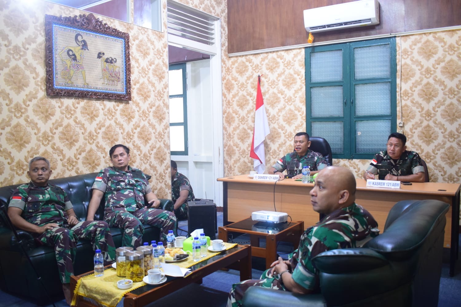 Pontianak, Danrem 121/Abw Brigjen TNI Luqman Arief, S.I.P., M.I.P., didampingi Kasrem 121/Abw Kolonel Inf Mohamad Isnaeni, S.E., M.M., menggelar rapat dengan Komandan Satuan jajaran Korem 121/Abw secara vicon, bertempat di Ruang Kerja Kediaman Danrem 121/Abw, Pontianak, Kalimantan Barat, Kamis (01/08/2024).