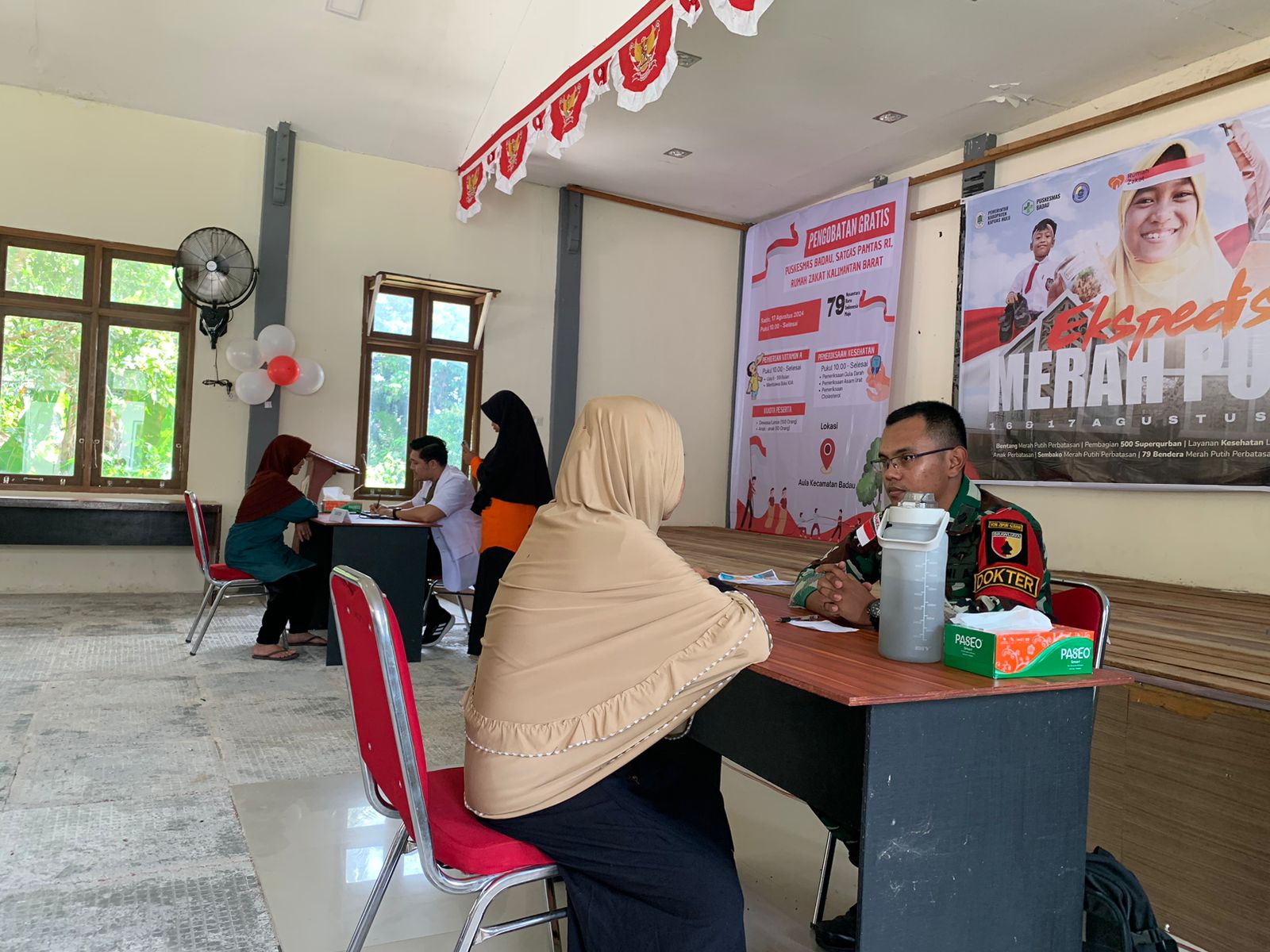 Di tengah kemeriahan perayaan Hari Ulang Tahun (HUT) Ke-79 Kemerdekaan Republik Indonesia tahun 2024, Satgas Pamtas RI-Malaysia Yonzipur 5/ABW bekerjasama dengan Puskesmas Badau menyelenggarakan kegiatan pengobatan gratis kepada masyarakat yang terletak di pasar wisata Badau, Kecamatan Badau, Kabupaten Kapuas Hulu, Selasa (20/8/2024).